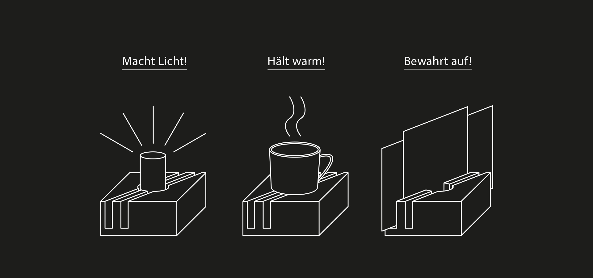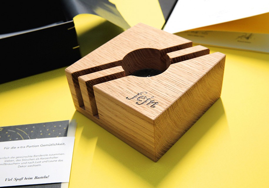 Ein Klotz aus Holz, genauer gesagt aus Eiche. Zu gebrauchen als Stövchen, als Kerze, als Buchstütze oder zur Aufbewahrung von Post, Fotos und vielem mehr. Ein wahres Multitalent, das zurecht unser Branding trägt.