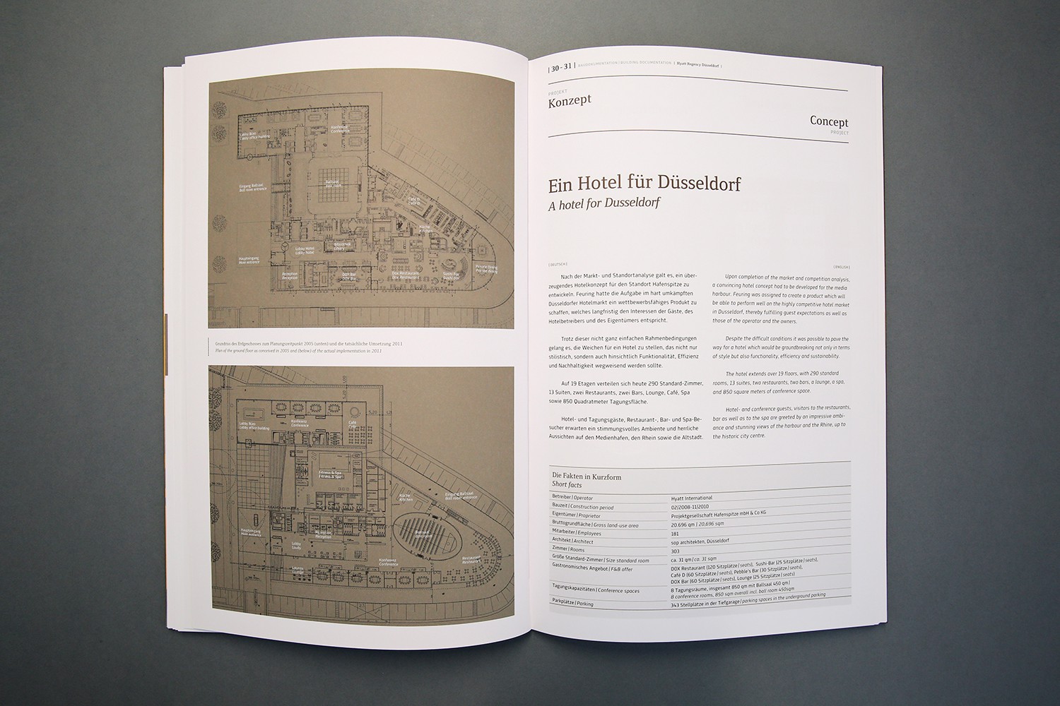 Das Hyatt Regency auf der Hafenspitze in Düsseldorf ist eines der Prestigeprojekte der Feuring Gruppe. Die Baudokumentation zeigt die gesamte Bandbreite des Leistungsspektrums des Unternehmens und gibt einen Einblick in die Komplexität bei der Entwicklung von Hotelimmobilien.