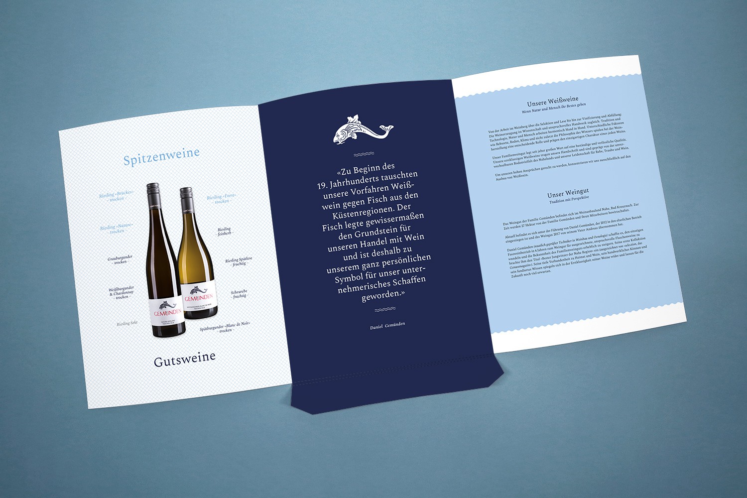 Was hat denn Wein mit einem Fisch zu tun? Augenscheinlich erst einmal gar nichts. Wirft man allerdings einen Blick in die Historie des Familienweinguts »Gemünden«, so erfährt man, dass dessen Gründer zu Beginn des 19. Jahrhunderts in den Küstenregionen Wein gegen Fisch tauschten. Der Fisch legte somit gewissermaßen den Grundstein für den Handel mit Wein und steht deshalb heute als Symbol für das unternehmerische Schaffen des Familie Gemünden.